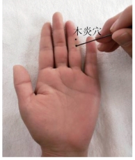 【准确取穴】在手指,首先将掌面无名指第2节分成3等分,分别紧贴着尺侧的指骨边缘上下1/3处各取一穴。