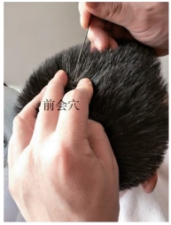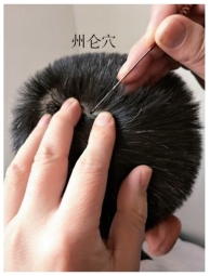 【准确取穴】在头部,以州圆穴为标志点,首先确定出州圆穴,然后再从州圆穴直前量1.5寸处取穴。
