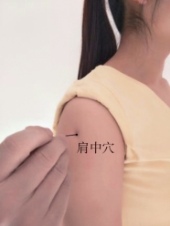 【准确取穴】在臂部,首先将手臂自然下垂,以肩骨缝为标志点,确定出肩骨缝,然后自肩骨缝向下2.5寸之正中央处取穴。